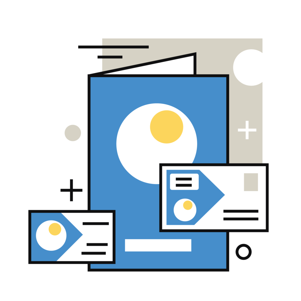 Criação de marcas desde o logotipo até posicionamento. Criação de todos os tipos de peças impressas. Desenvolvimento de peças off-line para comunicação visual.